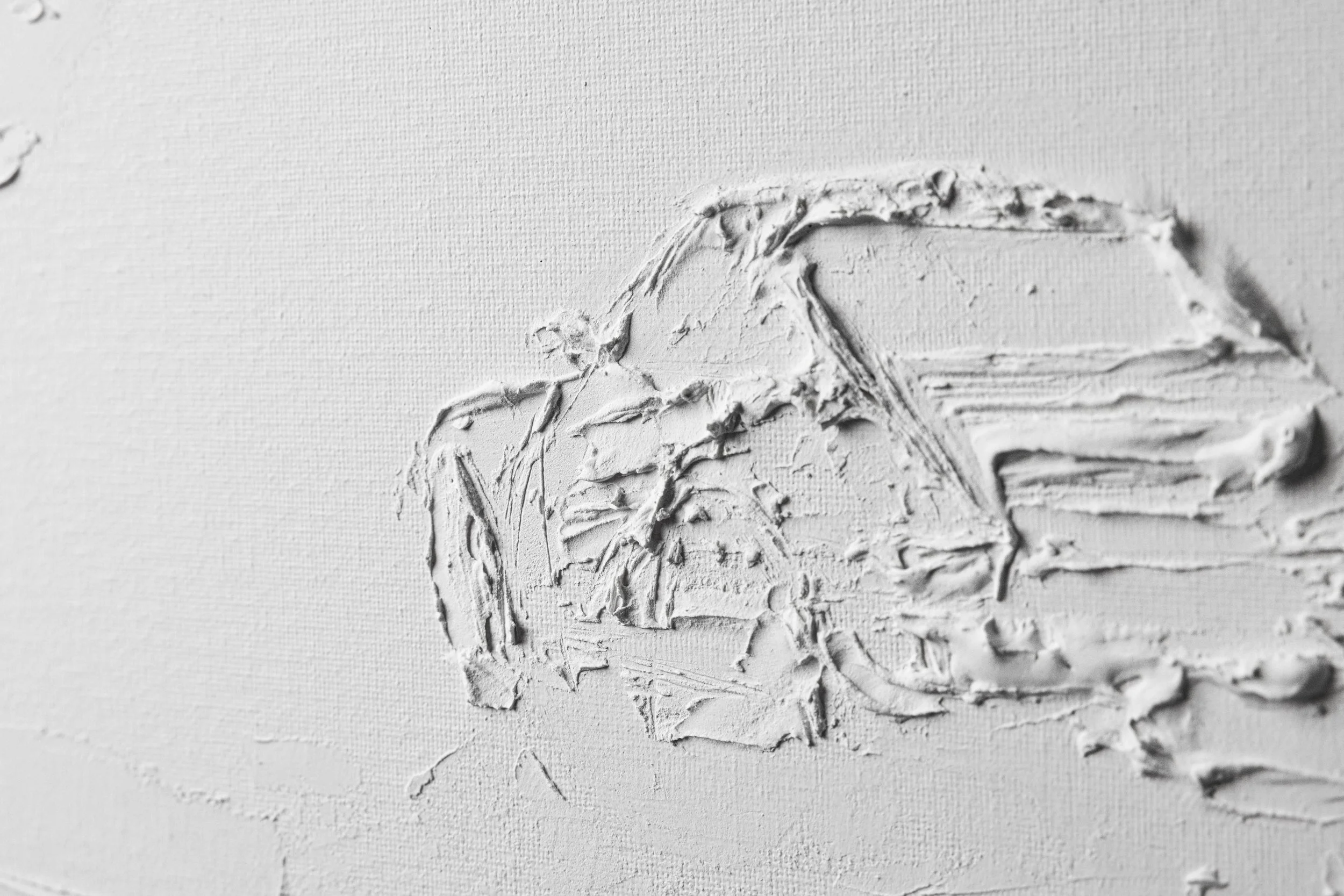 The artist signature in red, is both a nod to the red pencil ubiquitous in construction and the unmistakable caliper color of Porsches.